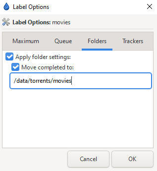 Labels are the equivalent of categories for qBittorrent, and how you can manage and organize your torrents in groups. Starr apps can use labels in Deluge to keep track of downloads to monitor, rather than watching every torrent in your client.