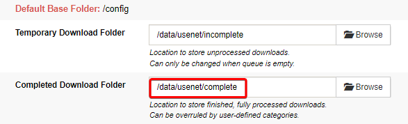 • /downloads => /data/downloads, /data/usenet, /data/torrents