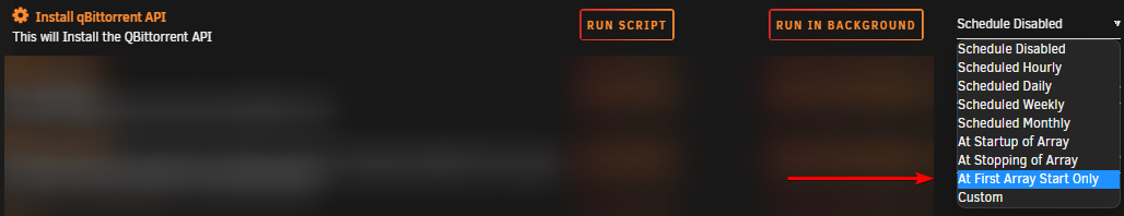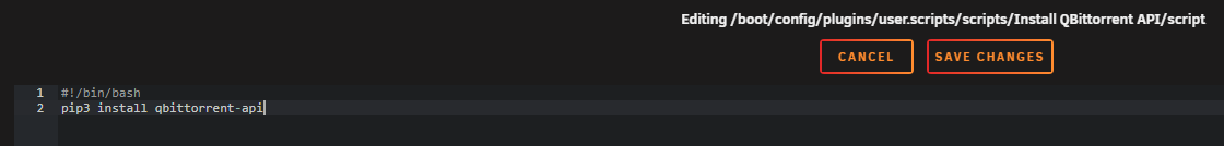 The script needs the qbittorrent-api module to work, so we need to make sure it's installed when your unRAID server starts, or when the Array is started the first time.