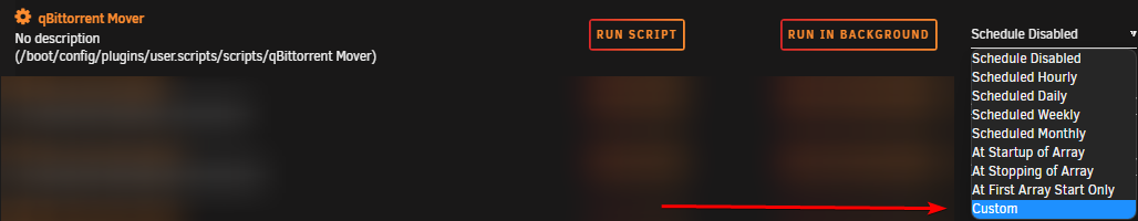 Click the schedule dropdown to choose when the script should run. We want to select Custom.