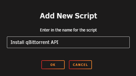 A popup will appear asking you to name the script. For this example, we're going to use Install qBittorent-API and then click on OK.